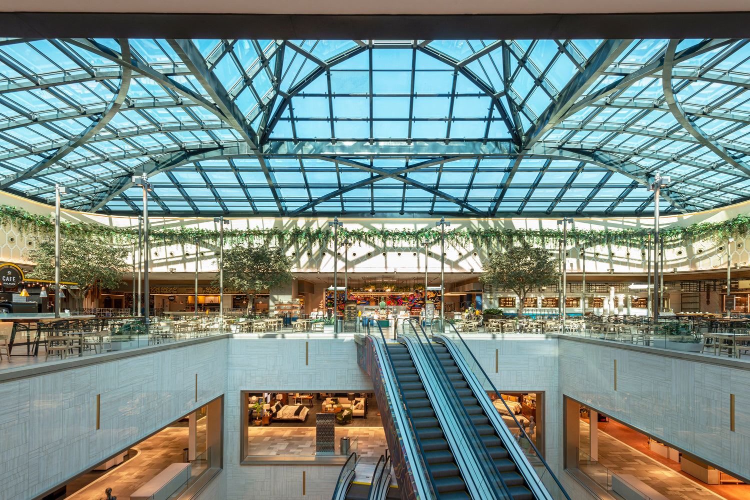 La Terraza Palacio se encuentra en la parte superior de El Palacio de Hierro, bajo un domo inteligente que da la sensación de apertura al pasear por los barrios de Coyoacán.